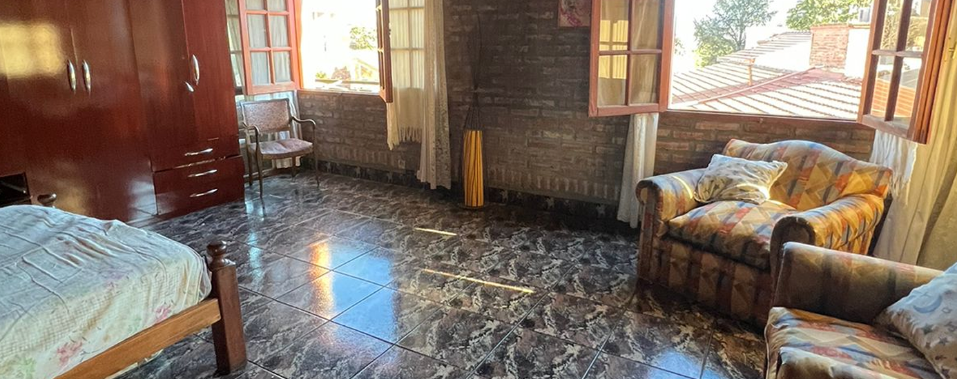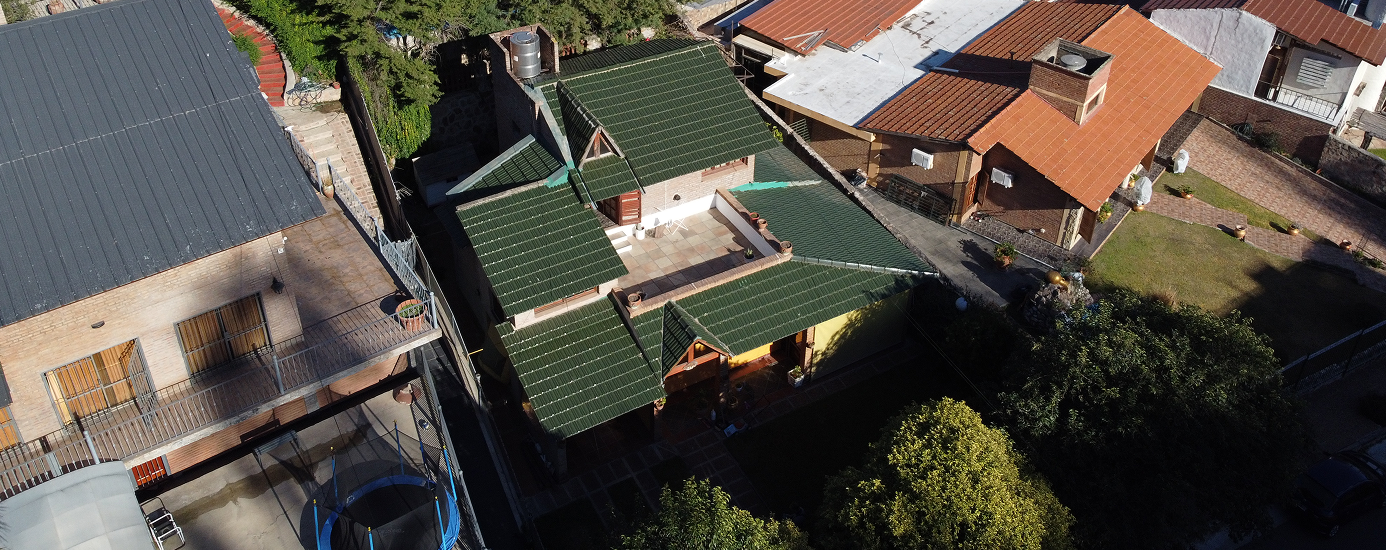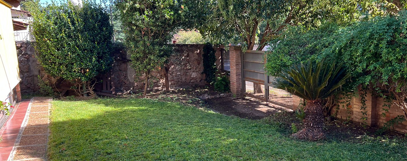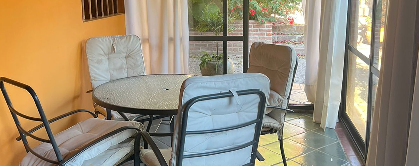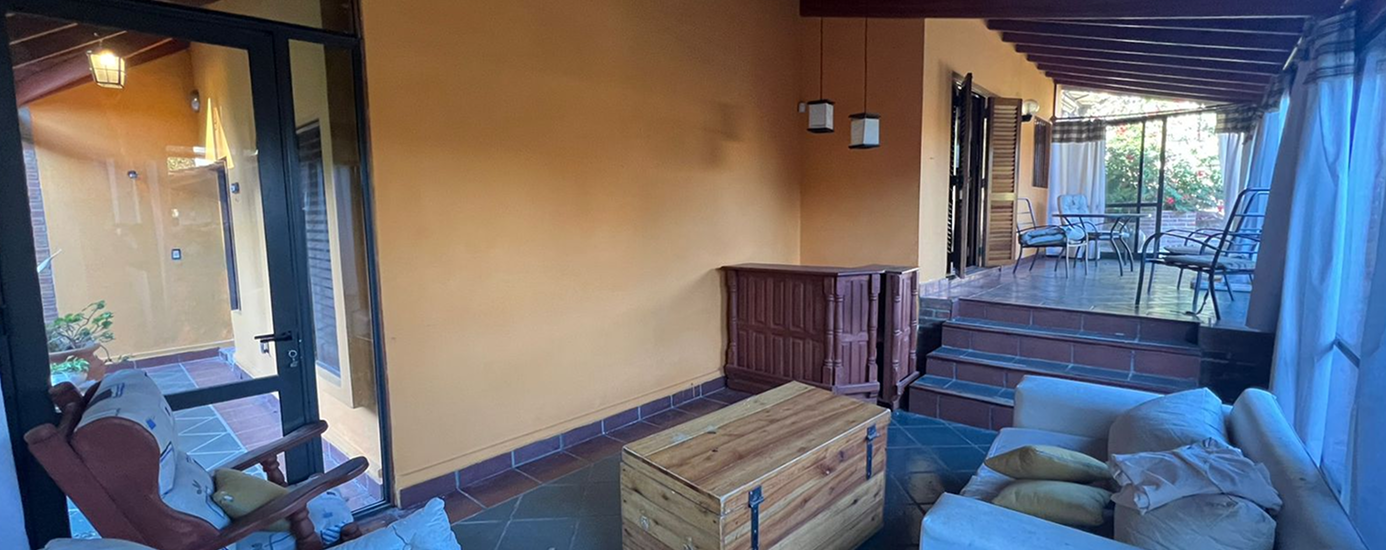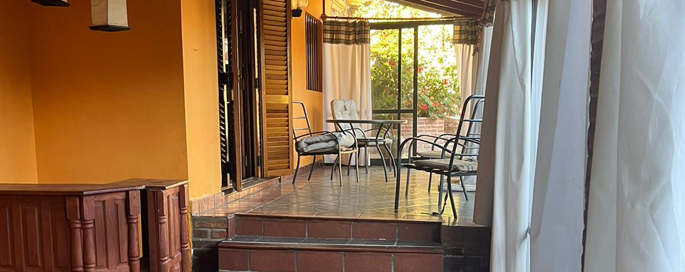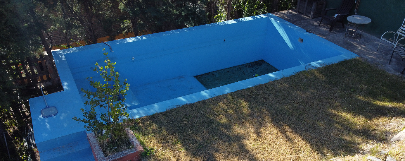- Patio trasero con acceso a zona de piscina mediante escaleras