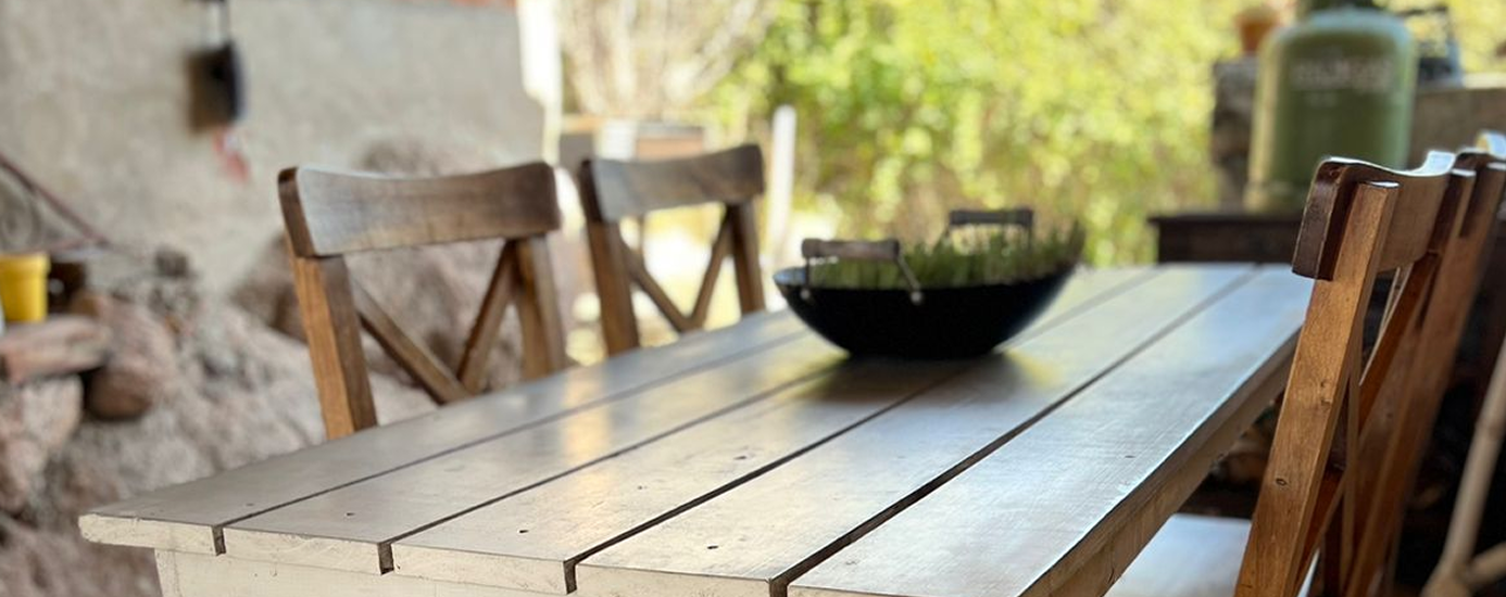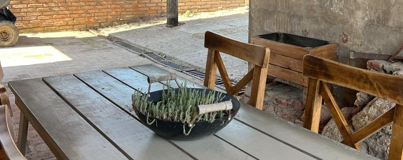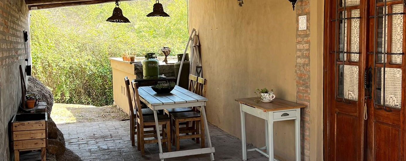 - Patio trasero en desnivel con cañaveral y arroyo propio