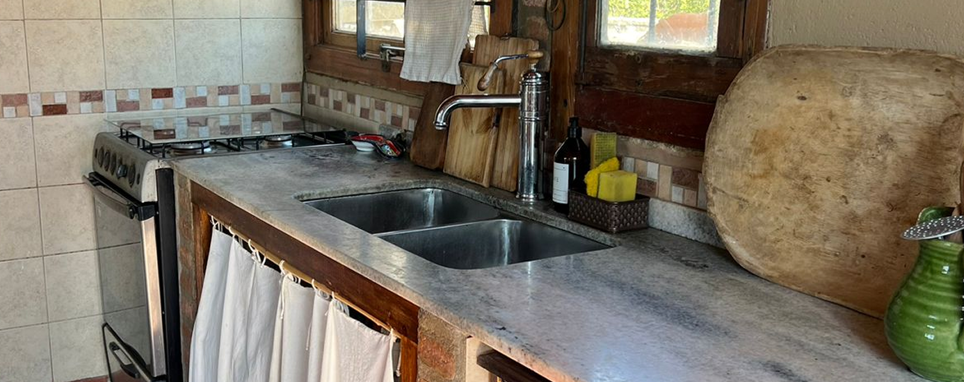 - Pasillo de distribución con ingreso a cava de piedra rústica de montaña